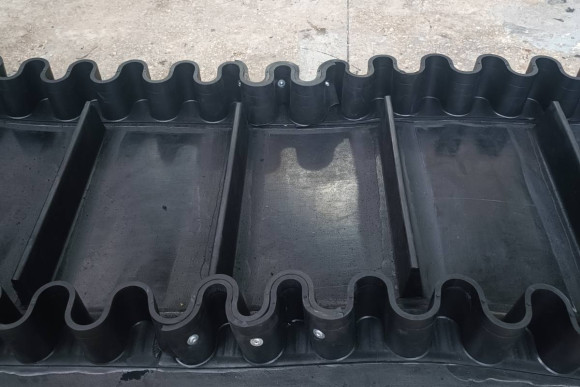 Шевронная лента с поперечными профилями и гофробортом ORTUS торговой марки ООО "ТРП ТАРГЕТ". Производится в соответствии с ТУ У 22.1-36989273-001:2020.