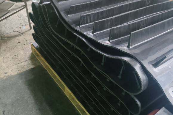 При производстве шевронных лент на нашем предприятии используется резина повышенной эластичности и износостойкости.
