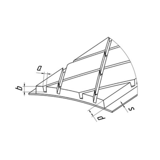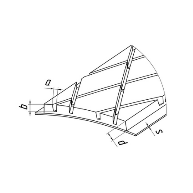 Крепление сменных пластин на обечайке барабана посредством установки таких металлических направляющих позволяет осуществлять быструю замену износившихся обрезиненных элементов без демонтажа оборудования.
