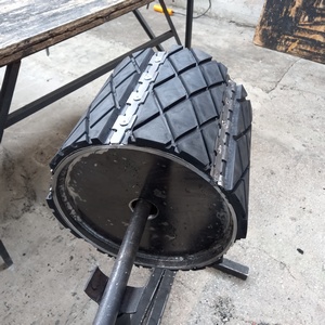 Обрезинивание барабана резинометаллическими плитамипроизводится без клея и вулканизации и имеет ряд преимуществ: