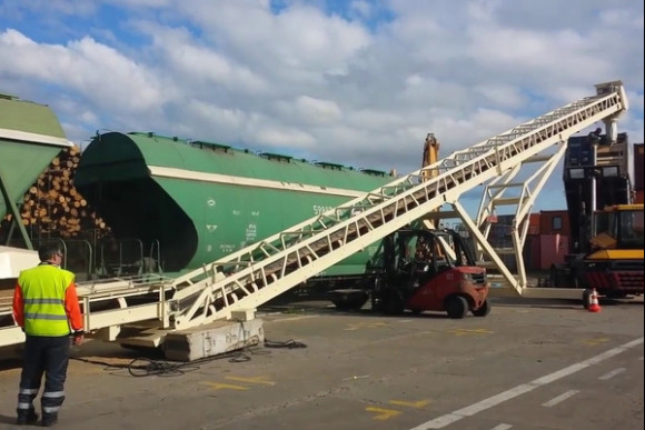 Разгрузка груза из вагона хоппера с использованием механического разгрузчика